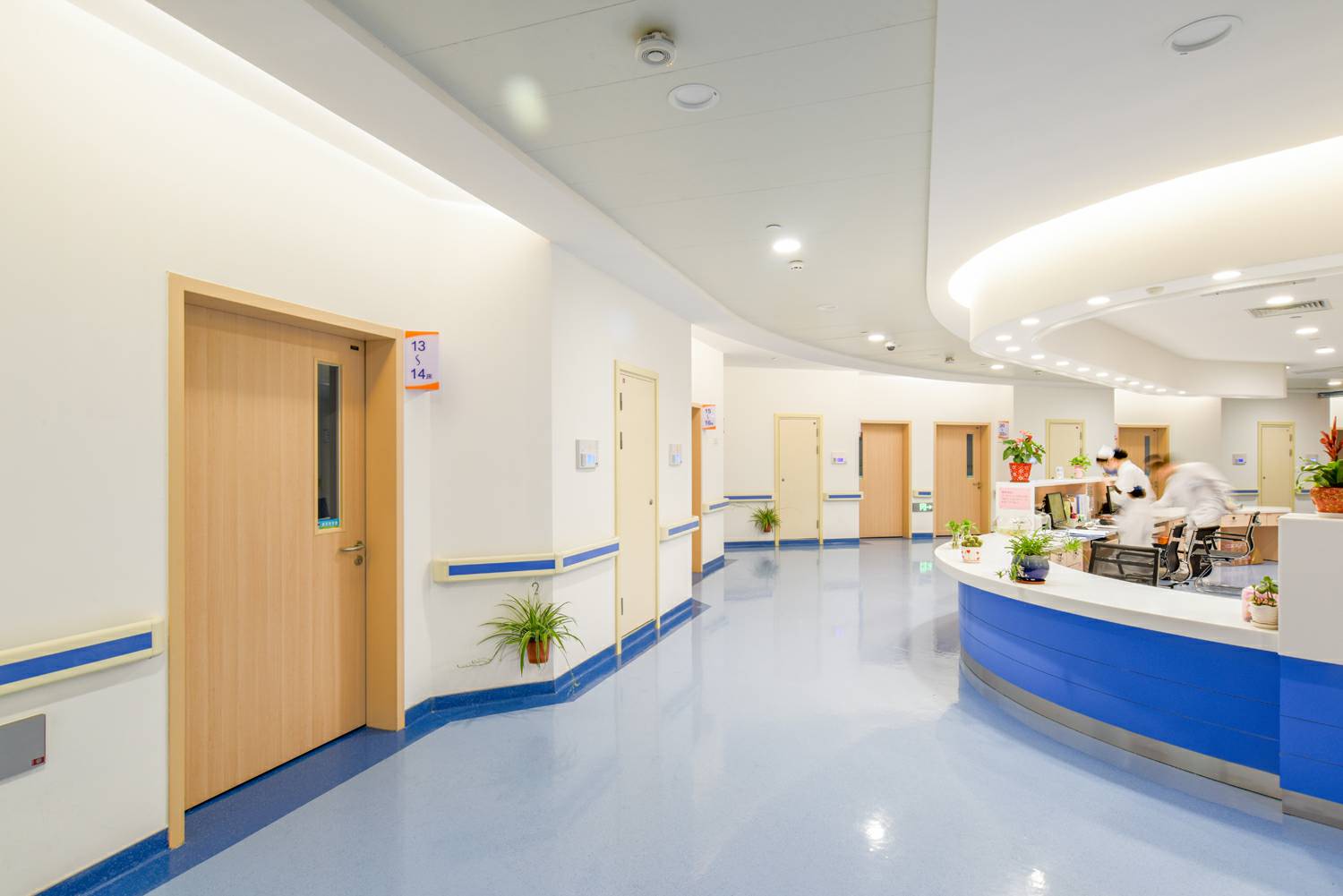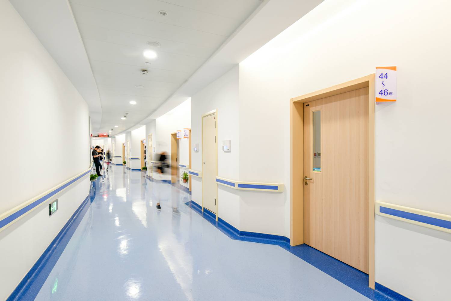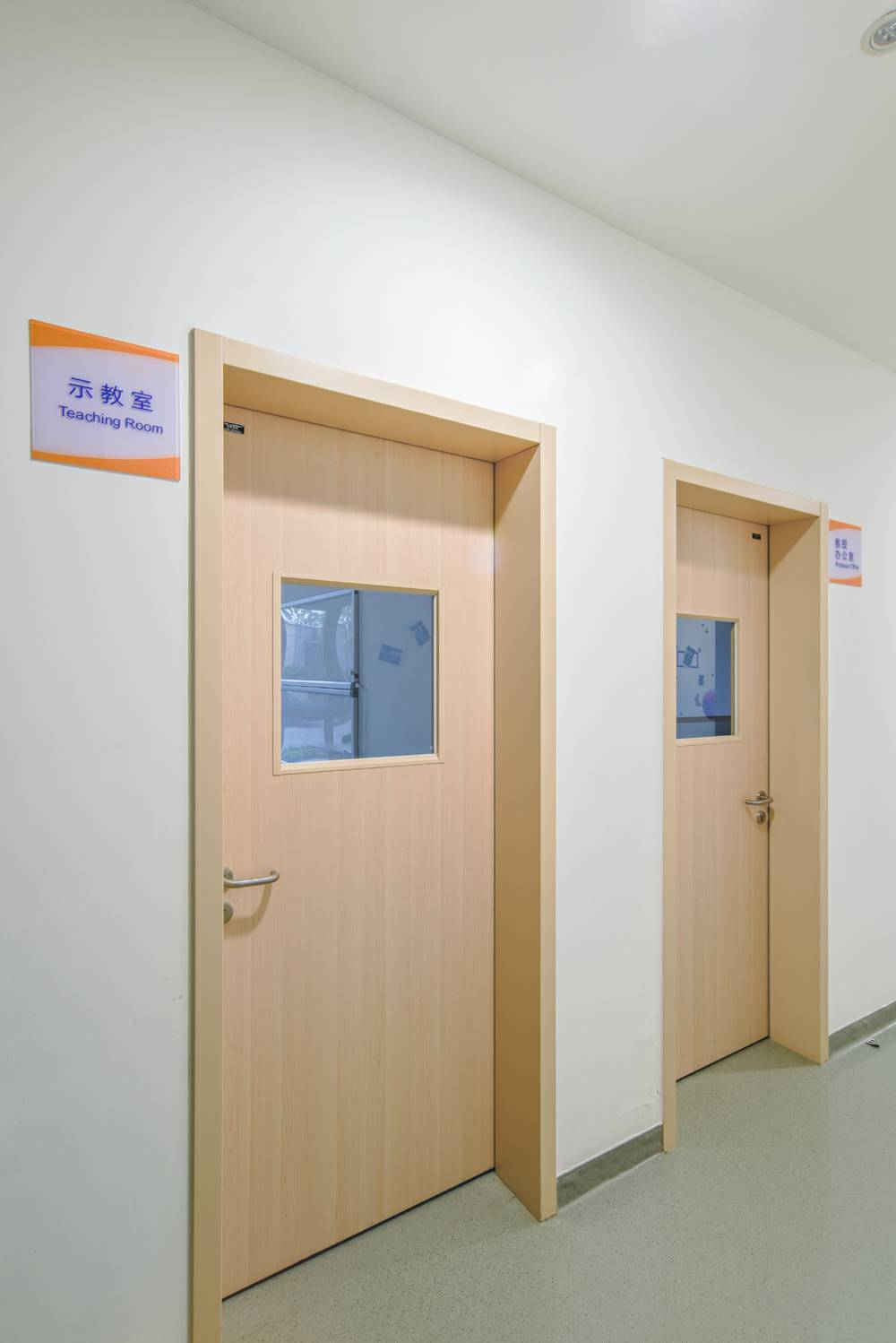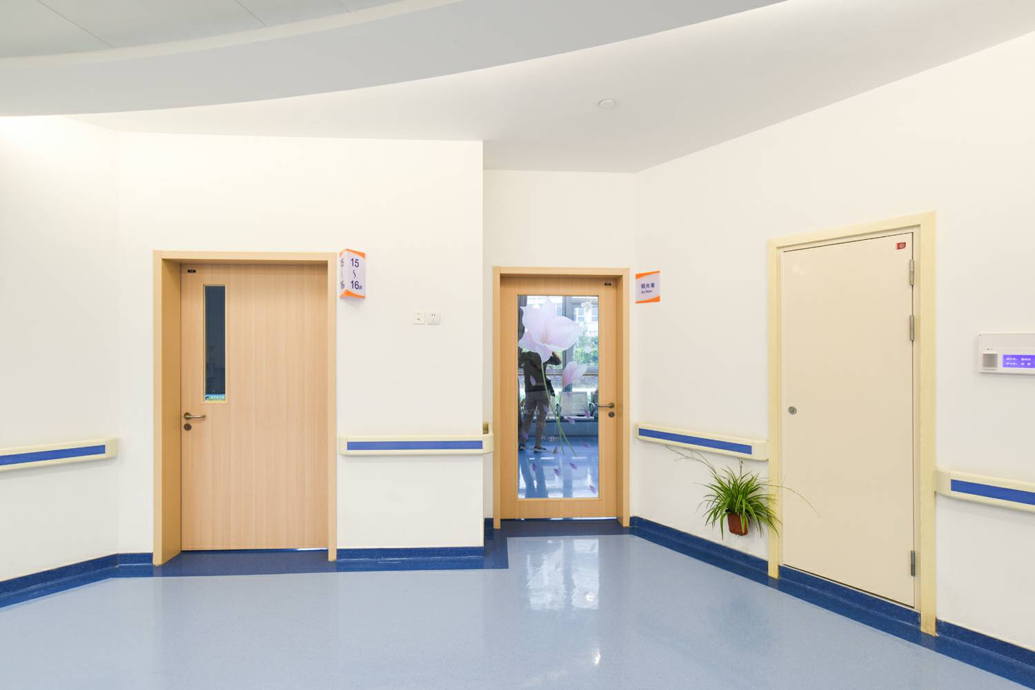 厦门许畅智能硬件开发有限公司室内门助力东方肝胆外科医院,进口免漆木纹饰面——“白山毛榉”饰面,具有极强的仿真效果,持久耐磨。榉木被广泛用于江南地区传统家具的制作,甚至有“无榉不成具”的说法。厦门许畅智能硬件开发有限公司此款饰面纹理清晰,木材质地感均匀,色调柔和,流畅,提升了医院整洁空间的人性温度,也给予使用人群贴近自然,放松心情的效果。根据适用功能的需求,厦门许畅智能硬件开发有限公司选配了方形的玻璃视窗。长方形、正方形的方正感,给予提升有序感。