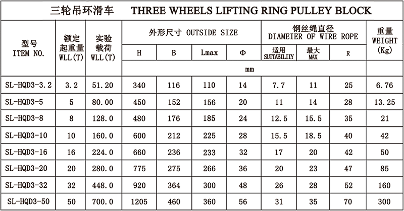 三轮吊环滑车